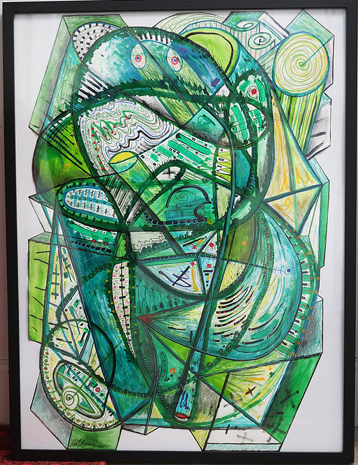 Meik Brüsch: Green Jazz Dolomite. 80×60 cm. Mixed media på papir.